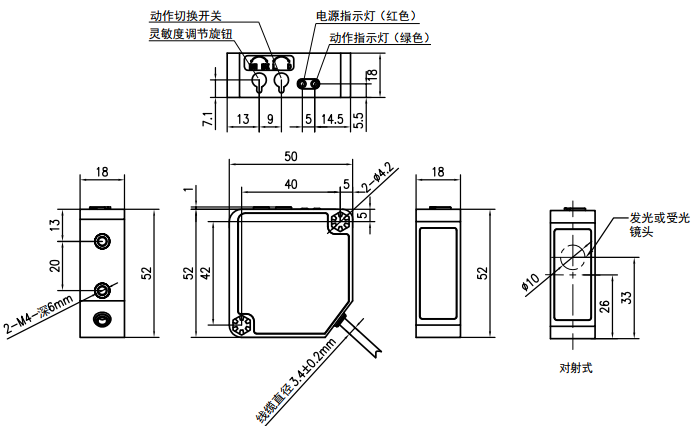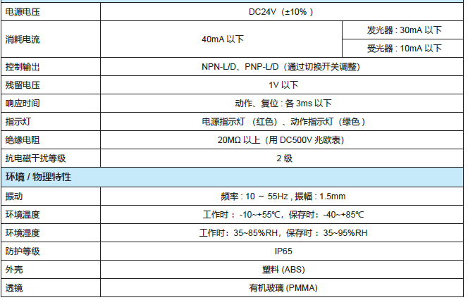 對(duì)射式、反射式、漫反射式特點(diǎn):安裝方便,接線簡(jiǎn)單;抗電磁、光干擾能力強(qiáng);抗振性強(qiáng),防水防塵性能優(yōu)越;縮短停機(jī)時(shí)間,實(shí)時(shí)通知傳感器的異常部位和現(xiàn)象。技術(shù)參數(shù):型號(hào)表述:接線圖: 對(duì)射式NPN輸出: 漫反射接線: 回歸反射式接線:外形尺寸: ...