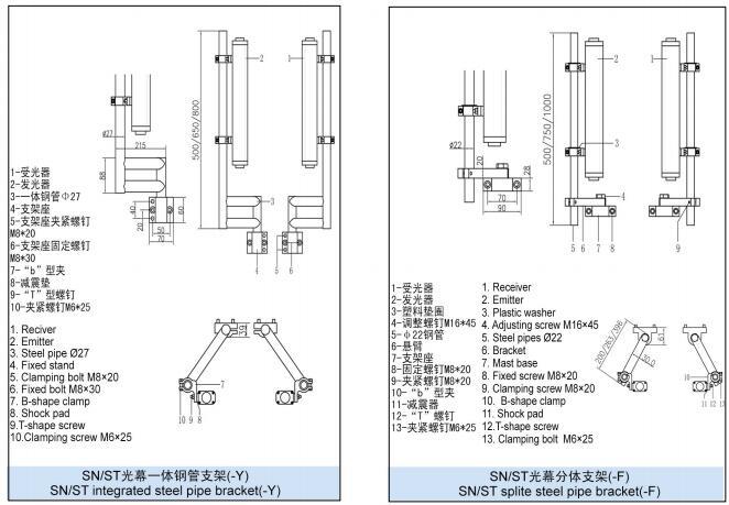 注:E/G系列尺寸及型號(hào)同D系列;標(biāo)準(zhǔn)版SND/E/G安全光幕選型表。對(duì)于光軸間距為20mm的多功能版SND/E安全光幕,其光束從8路開(kāi)始,并以4路遞增,如08,12,16, 20,24.......100;對(duì)于其他光軸間距的多功能版SND/E安全光幕,可參照選型表。