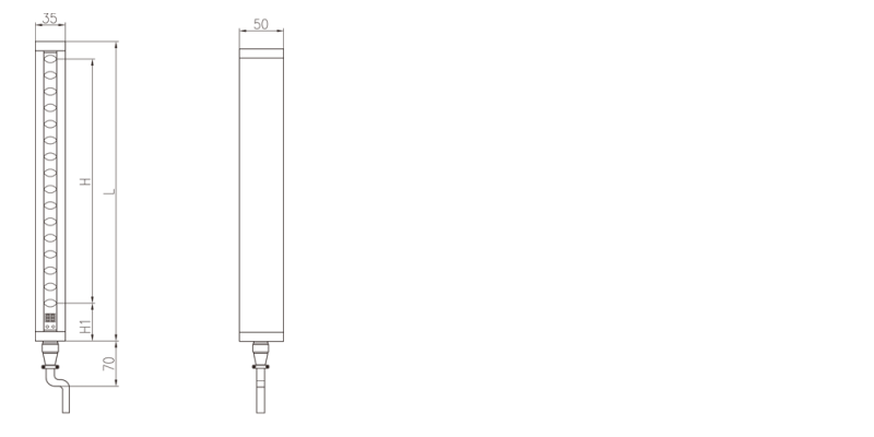 L:傳感器高度, H:保護(hù)高度;H1=47mm,第一束光與下端蓋距離