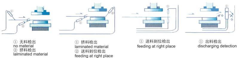 在沖床自動沖壓加工過程中,預(yù)防模具損壞和不良品的產(chǎn)生。具有擠料(波動)檢出、無料(材料末端)檢出,送料到位檢出、出料檢出等多種監(jiān)測功能。